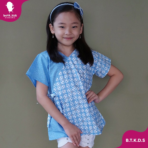 Name: Blus Batik Anak Biru Kawung Kombinasi Bagus Unik Cantik Atasan Batik Biru Soft Cocok Buat Kesekolah