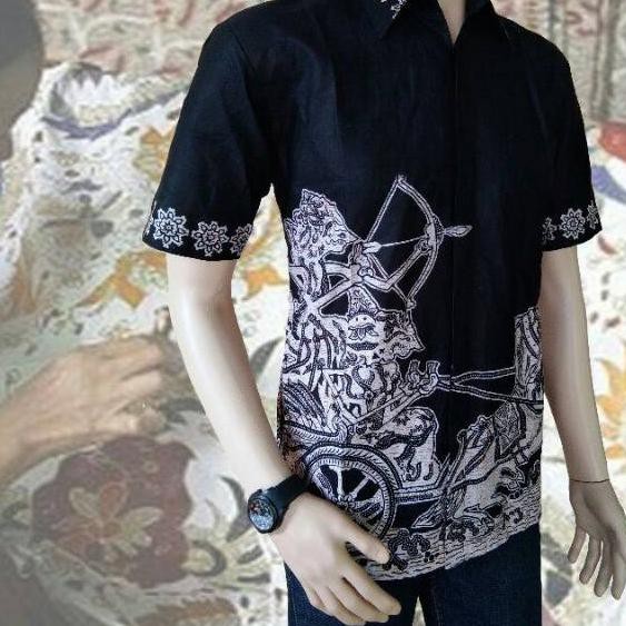 Name: Birthday Sale Kemeja Batik Pria Lengan Pendek Motif Hitam Putih Cream Manisarjuna Memanah ♣